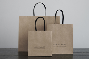 AUX PARADISは輸送によるCo2排出削減等の環境負荷低減のため、手提げ袋を国内製造品へと変更いたします。