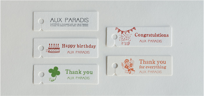 AUX PARADISでは、贈り物用ラッピングした商品をGIFTページにご用意しております。お誕生日や季節ごとのお祝い、日頃のお礼や贈り物として、それぞれの用途に合わせたギフトタグまたはのしをお選びいただけます。